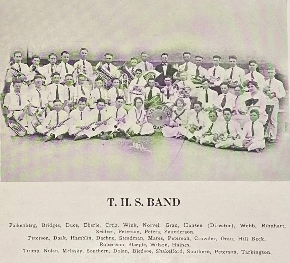 In 1922, Taylor High School organized a band thanks to the leadership of Miss Haines, the superintendent of music at the time, the Taylor Ex-Student Association, the Rotary Club, the Retail Merchants’ Association, and numerous other Taylorites and school teachers.