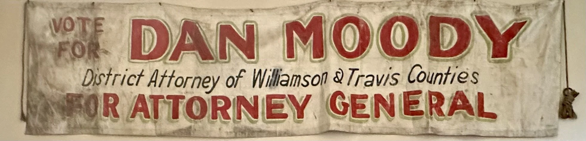 This canvas campaign sign was used when Dan Moody was running for Attorney General of Texas in 1924. This item was handcrafted - notice the sketch lines and erasures.